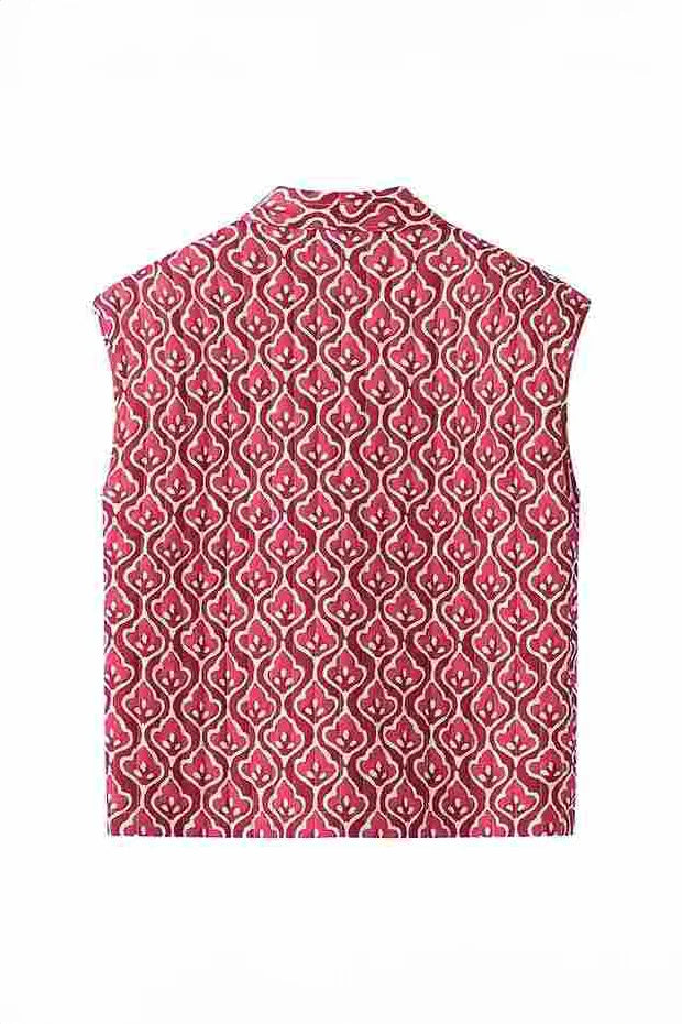 Perfect for layering over shirts or blouses. this versatile vest transitions seamlessly from work to weekend outings. Its modern design and unique print ensure you stand out with elegance and ease. making it an essential piece for a polished. fashionable appearance.