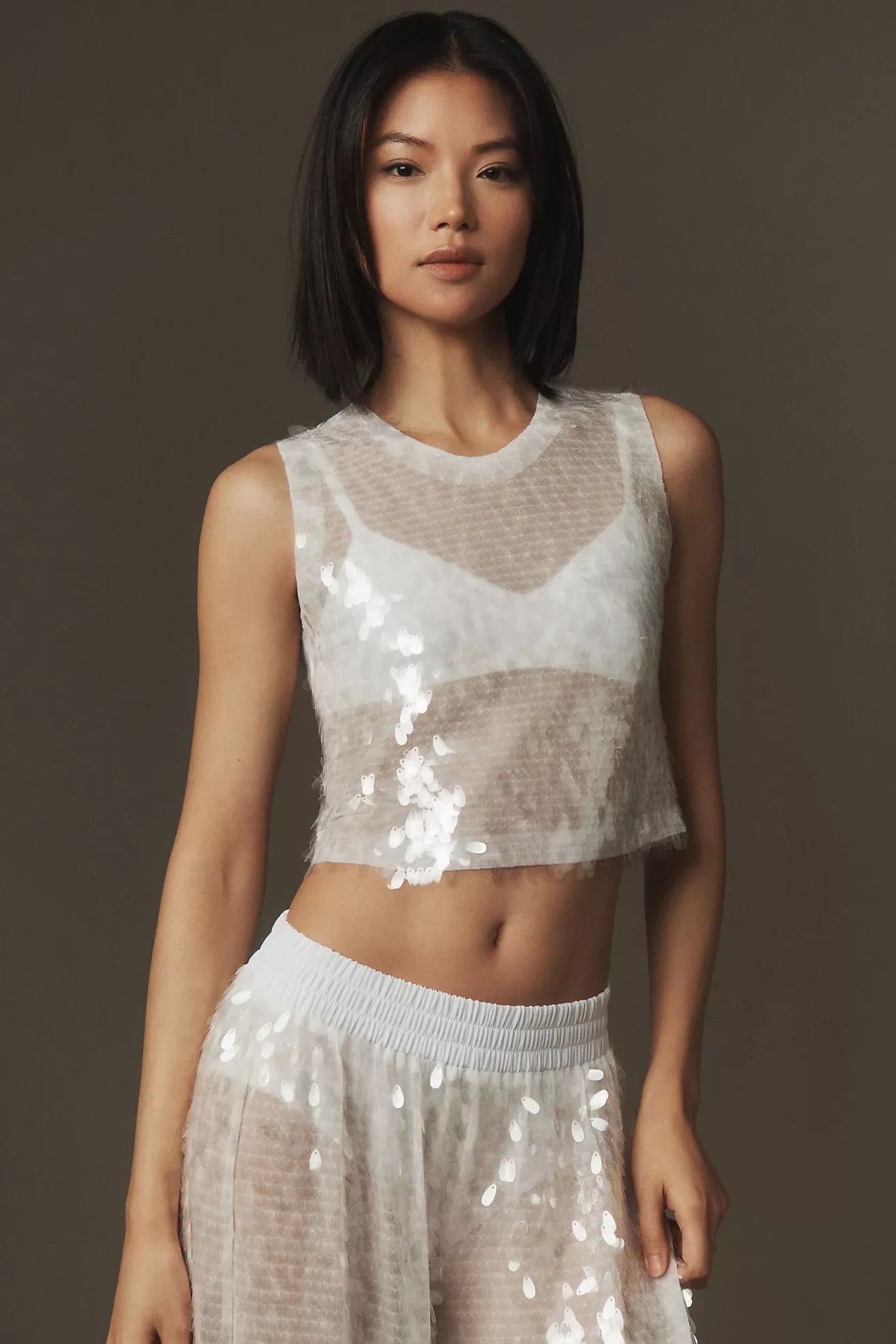 • Semi-sheer with all-over sequins for a touch of sparkle.