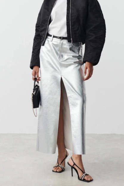 Elevate your autumn wardrobe with our stylish slim fit skirt. designed for the modern woman. Crafted from a blend of breathable polyester and cotton. this skirt ensures comfort while keeping you effortlessly chic. The luxurious leather detailing adds a touch of sophistication. making it perfect for both casual outings and upscale events.