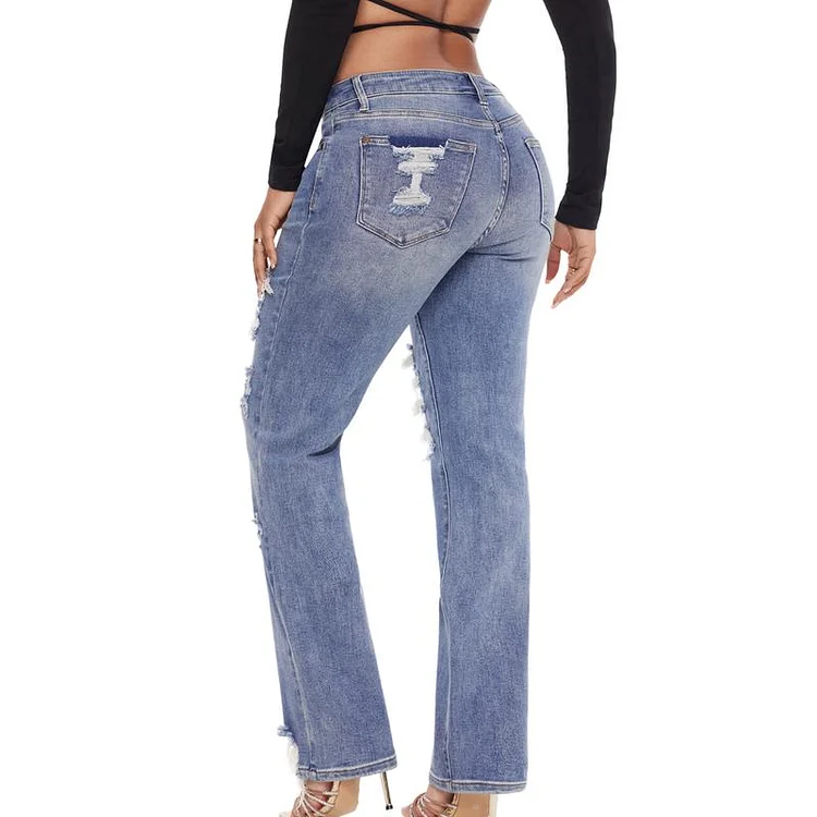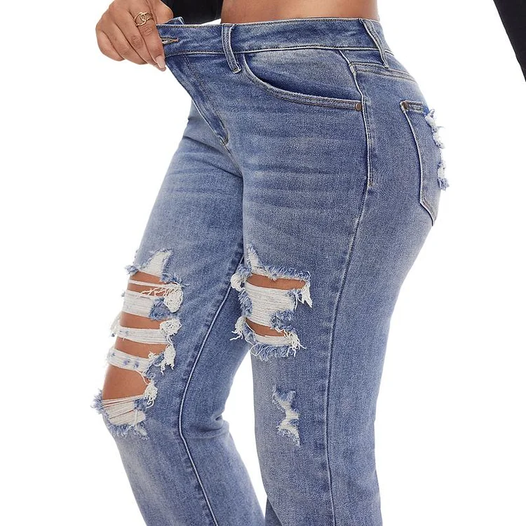 Mid-High Waisted Stretch Ripped Jeans(Buy 2 Free Shipping)