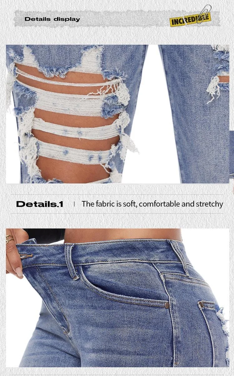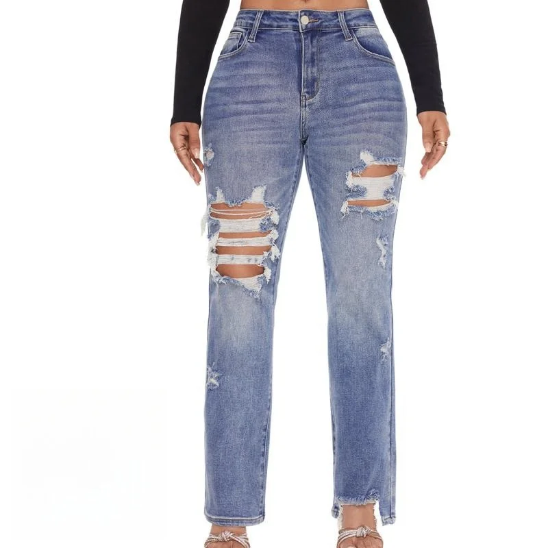 Classic straight-leg jeans with bold rips, a flattering mid-high rise, and shaping details — your perfect mix of comfort and edge. Designed to flatter your figure with tummy control and a subtle butt-lift effect.