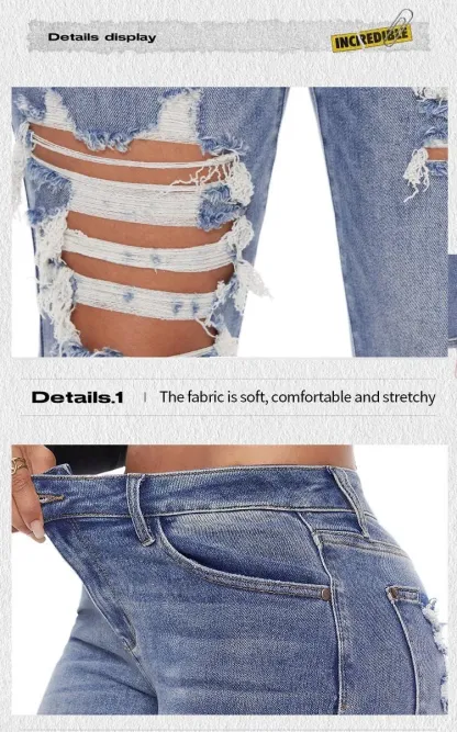 Ripped jeans are a timeless staple — incredibly comfortable and effortlessly cool. This pair elevates the classic look with artistic rips and distressed details, finished with a stylish frayed hem.
